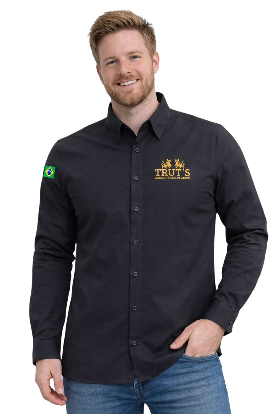 Camisas sociais: tecidos com elastano, poliéster e algodão, que garantem conforto e caimento perfeito.